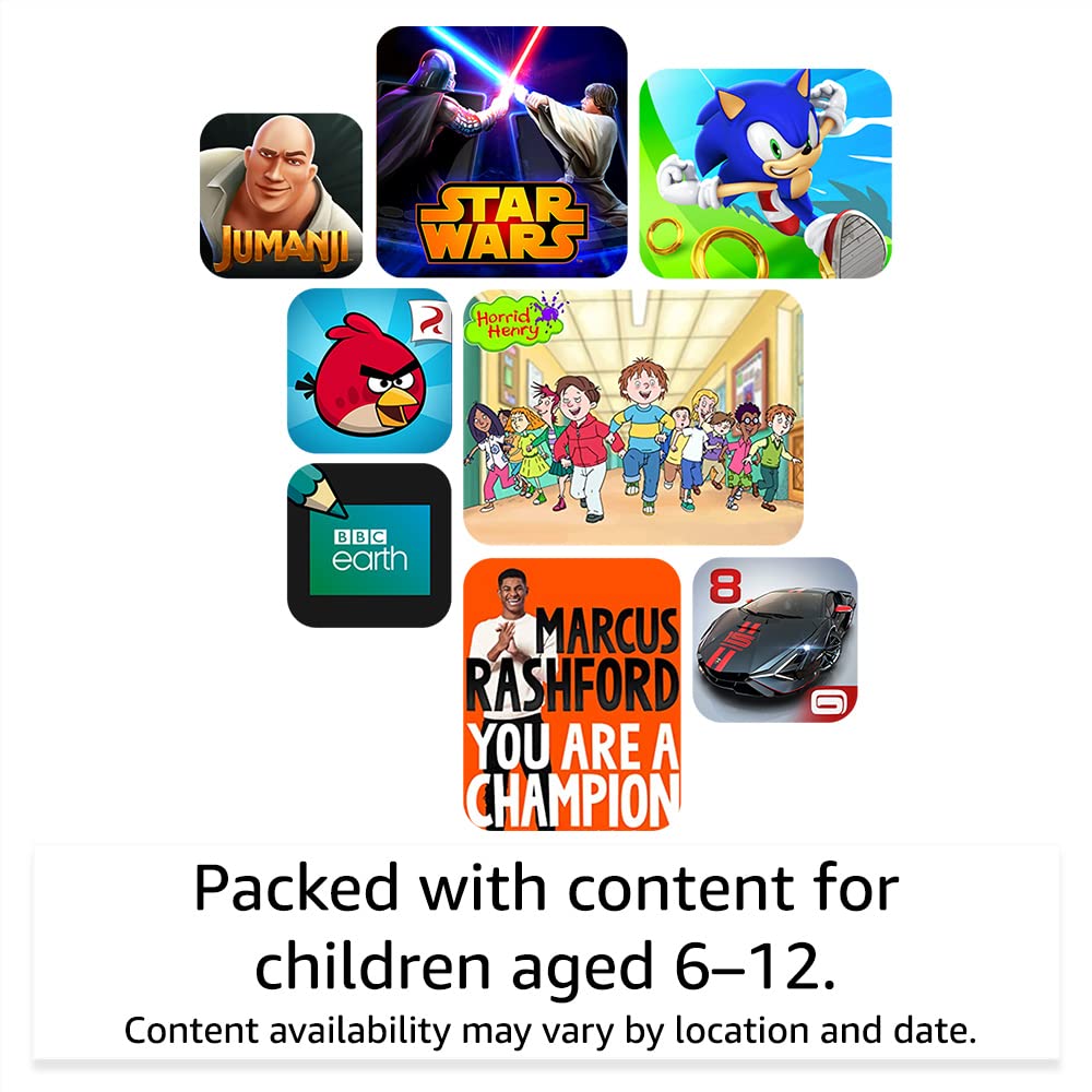 - Includes a full-feature tablet designed specifically for children aged 6–12 years old, and includes 1 year of age-appropriate Amazon Kids+ content and a slim Kid-Friendly Case.