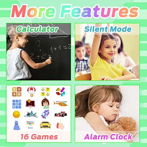 - 【More Useful Feature】Children's smart watches support setting Music, Camera, Alarm Clock, Puzzle Games, Taking pictures, Two-way call, Dial, phone book, One button SOS, Flashlight, Recorder, Calculator, Silent Mode, etc. Besides, the watch is equipped with keyboard. So you can modify the name of the contact as you want. It is a wonderful gift for kids ages 4-12 gifts. It's also perfect for parents who don't want to buy a mobile phone for the children.