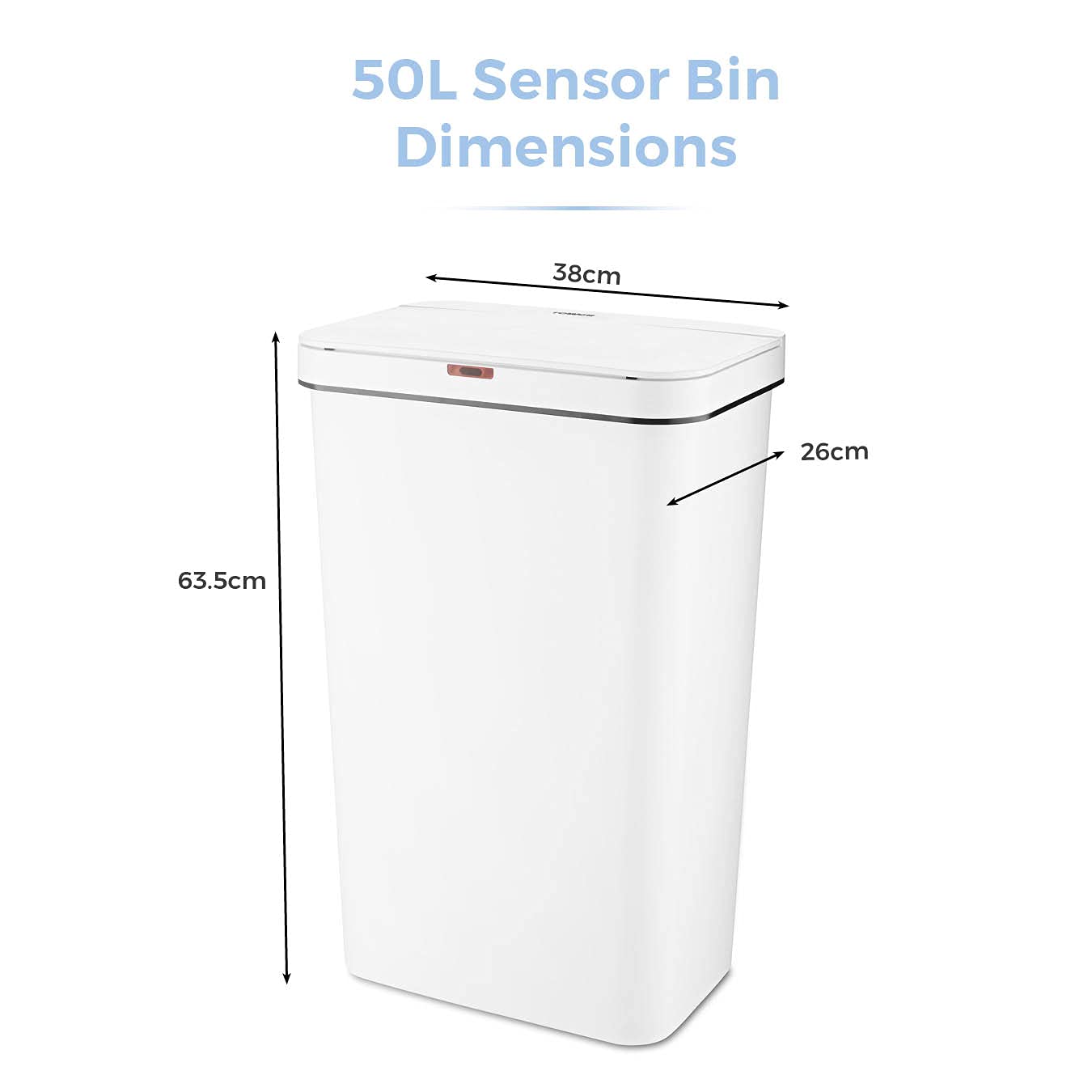 Tower T838005W Sensor Bin with Retainer Ring, Battery-Operated, 50L, White